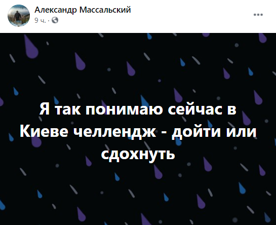 "Я так понимаю сейчас в Киеве челлендж - дойти или сдохнуть", - пишет Александр Массальский.