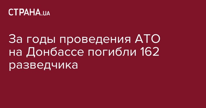 Выступая на праздновании 24-й годовщины военной разведки Украины Президент Украины Петр Порошенко сообщил о том, за время проведения АТО были убиты 162 воина-разведчика. Еще 632 получили ранения, указано в информационном сообщении пресс-службы главы государства.