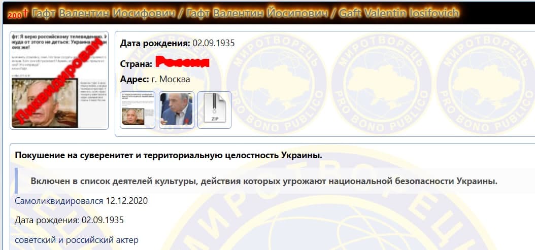 После этих слов Валентин Гафт попал на "Миротворец". После смерти актера там появилась запись "Ликвидирован".