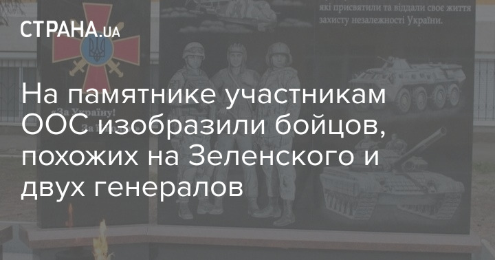 На памятнике танкист в форме, расположен в центре, отдаленно напоминает Зеленского. Пехотинец слева от него похож на Наева, а пилот справа - на Сирского.