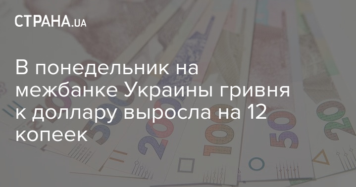 В понедельник на межбанке Украины гривня к доллару выросла на 12 копеек