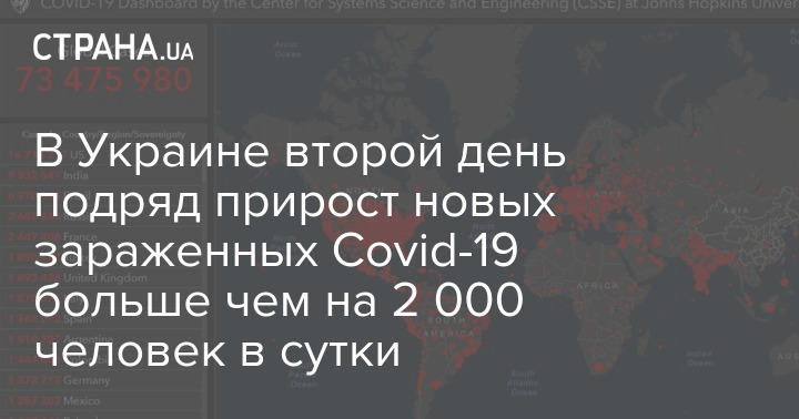 В Украине второй день подряд прирост новых зараженных Covid-19 больше чем на 2 000 человек в сутки