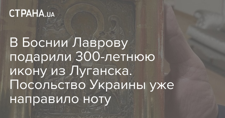 Один из членов президиума Боснии и Герцеговины подарил главе МИД России Сергею Лаврову, недавно обвинившему Киев в нарушении Минских соглашений, 300-летнюю украинскую икону. Она якобы была вывезена из неподконтрольного Киеву Луганска. Посольство Украины направило ноту в МИД страны с просьбой объяснить вручение такого подарка.