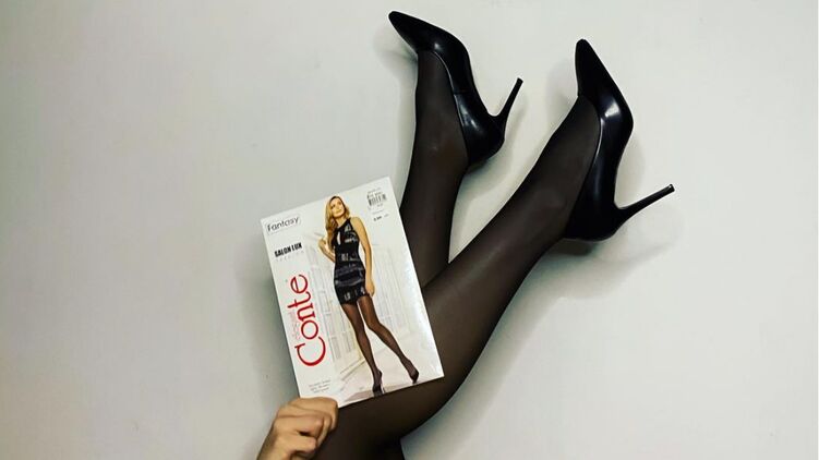 В связи с тем, что Хижинкова много лет была лицом бренда Conte, представительницы женского пола показали свои ноги в колготках и чулках на фоне таких упаковок.