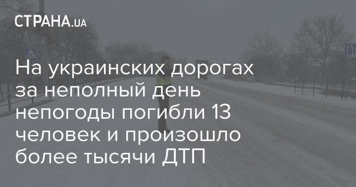 В Украине по состоянию на вечер среды из-за осложнения погодных условий произошло 1049 дорожно-транспортных происшествий, в результате чего 13 человек погибли.
