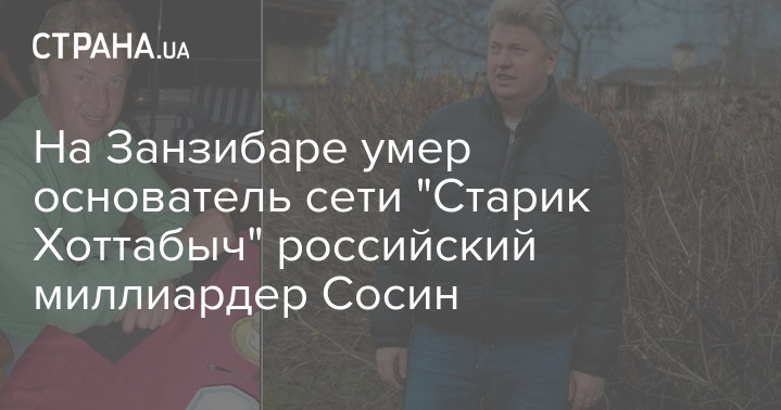 На Занзибаре в возрасте 53 лет внезапно умер российский миллиардер, хозяин магазинов "Старик Хоттабыч" и совладелец сетей OBI и Modis Игорь Сосин. Он скончался ночью предположительно от остановки сердца.