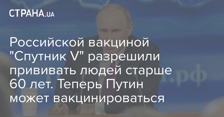 Российской вакциной "Спутник V" разрешили прививать людей старше 60 лет. Теперь Путин может вакцинироваться