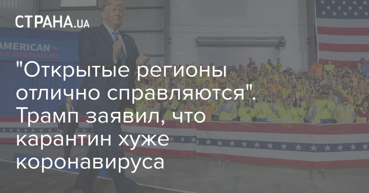 По словам Трампа, Флорида и другие регионы, которые пренебрегли карантином, "отлично справляются". Таким образом Трамп в очередной раз высказался об отмене карантинных ограничений, за которые выступили местные власти, исходя из высоких показателей заболеваемости и смертности от коронавируса.