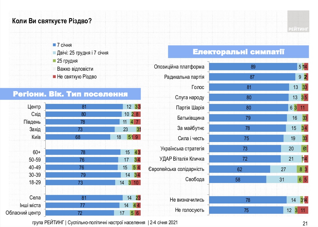 Не менее интересны и политические предпочтения украинцев, которые отмечают Рождество.