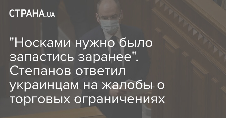 Министр здравоохранения Максим Степанов отмел жалобы украинцев на то, что во время локдауна из свободной продажи исчезли носки, заявив, что ими нужно было запасаться заранее, поскольку о введении жестких ограничений предупредили еще 9 декабря.