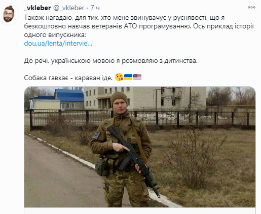 После появлении информации о блокировке Parler, в Твиттере начал проявлять активность украиноязычный пользователь vkleber.