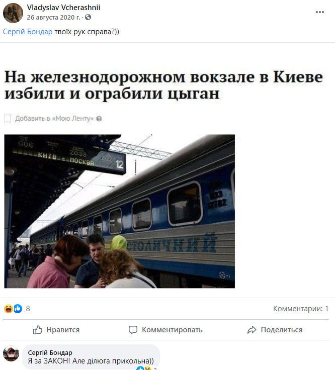 Причем, судя по его постам, Вчерашний - сторонник украинских ультраправых.