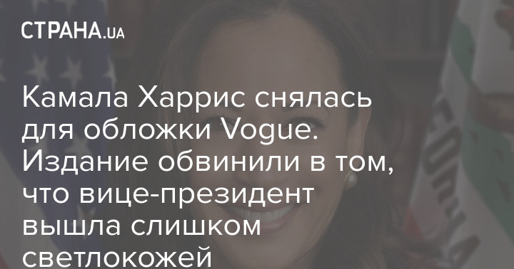 Камала Харрис снялась для обложки Vogue. Издание обвинили в том, что вице-президент вышла слишком светлокожей
