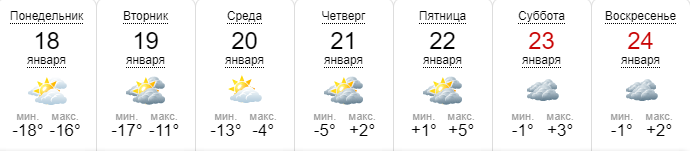 По данным ресурса sinoptik, следующая неделя в столице начнется с минусовых температур. При этом самый холодный день ожидается 18 января, когда минимальная температура будет -18, а максимальная -16.