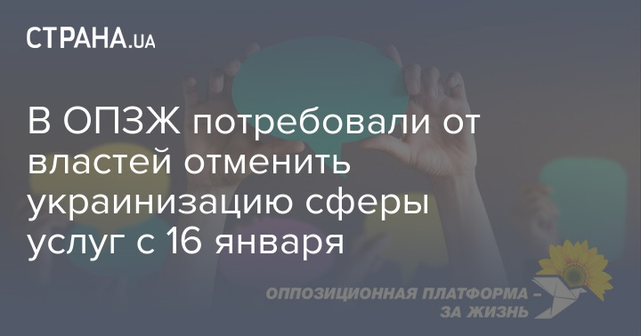 "Оппозиционная платформа - За жизнь" в связи со вступлением в силу с 16 января нормы языкового закона о переходе всей сферы обслуживания на украинский требует от власти отменить ее, поскольку она является дискриминационной.