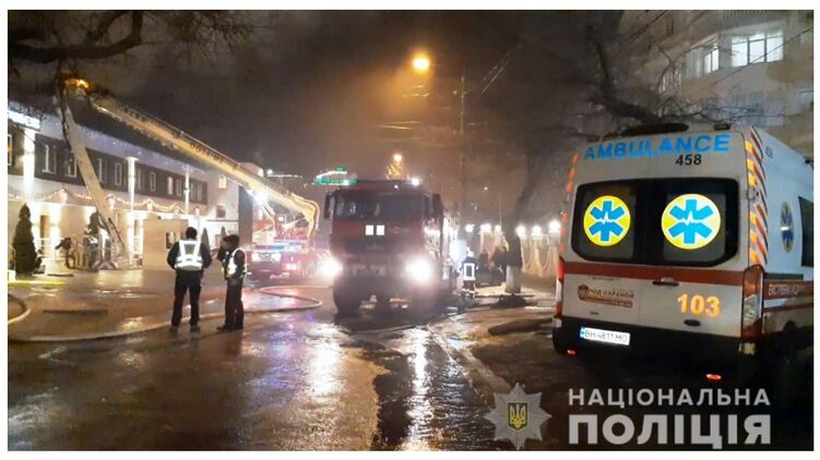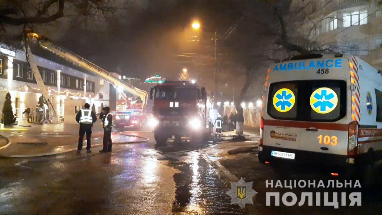 Пожар в одесском отеле вспыхнул в воскресенье вечером. Фото: Нацполиция