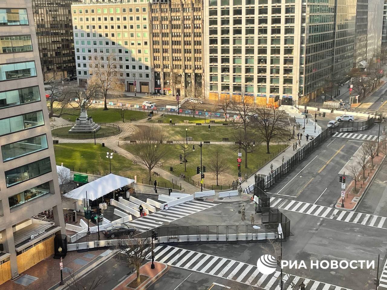 17:09 Центр Вашингтона перед инаугурацией: ограждения, военные, техника.