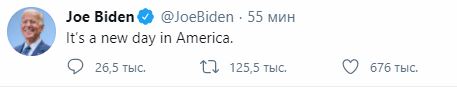 17:15 "Это новый день в Америке" - оставил твит Джо Байден.