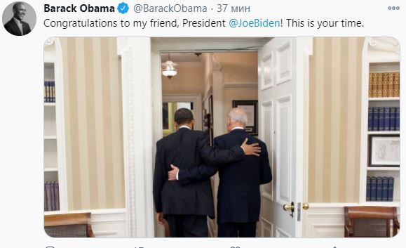 Перед этим Обама поздравил своего друга Байдена в Twitter.