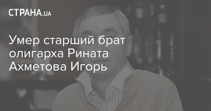 На 60-м году жизни скончался Игорь Леонидович Ахметов, старший брат украинского олигарха и президента футбольного клуба "Шахтер" Рината Ахметова.