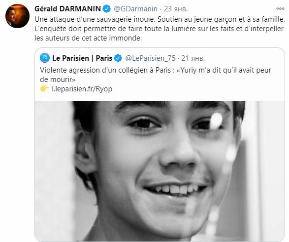 По их данным, нападение произошло 15 января, когда 15-летний Юрий с друзьями возвращался из колледжа. Недалеко от Эйфелевой башни, возле торгового центра Beaugrenelle, десяток неизвестных с металлическими палками, битами и ножами атаковали компанию студентов. Остальным удалось сбежать, а Юрия жестоко избили.