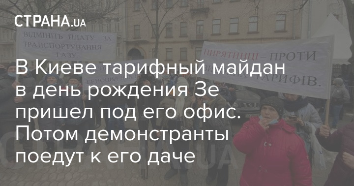 В Киеве возле Офиса президента началась акция протеста против повышения тарифов на газ и электроэнергию. Участники приурочили ее ко дню рождения президента Владимира Зеленского. На акцию протеста вышло около 100 человек. Люди держат в руках плакаты с требование прекратить тарифный геноцид.