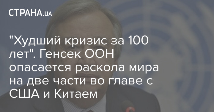 Кроме того, Гутерриш предупредил о возможности распада мира на две части во главе с двумя экономиками - Китаем и США.