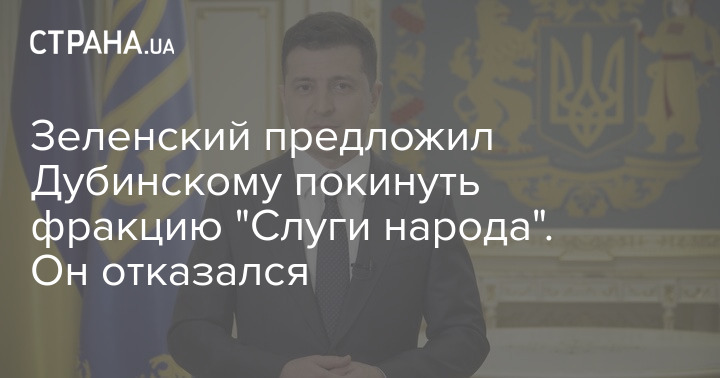 Президент Украины Владимир Зеленский на заседании фракции "Слуги народа" 25 января публично предложил народному депутату Александру Дубинскому покинуть ряды фракции.
