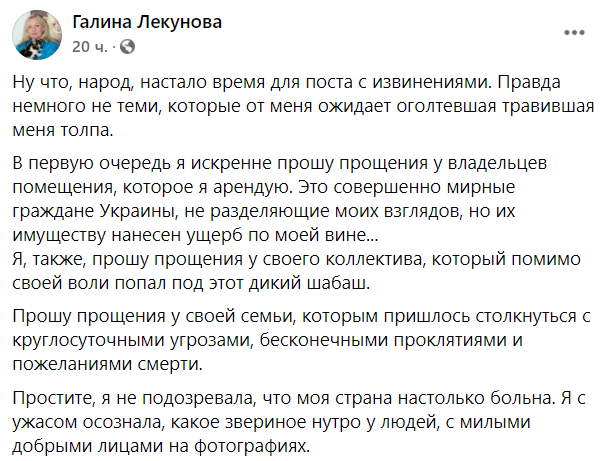 Из следующих постов Галины становится известно, что и ее националисты склоняли к извинениям.