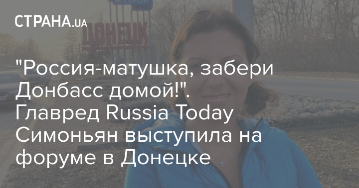Главный редактор телеканала Russia Today Маргарита Симоньян призвала Россию забрать Донбасс, заявив, что люди региона хотят "иметь возможность быть русскими".