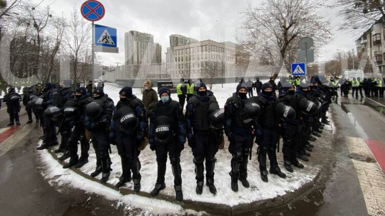 В Киеве из-за митинга ФОПов посольство США оцепили почти четыре сотни правоохранителей. Фото