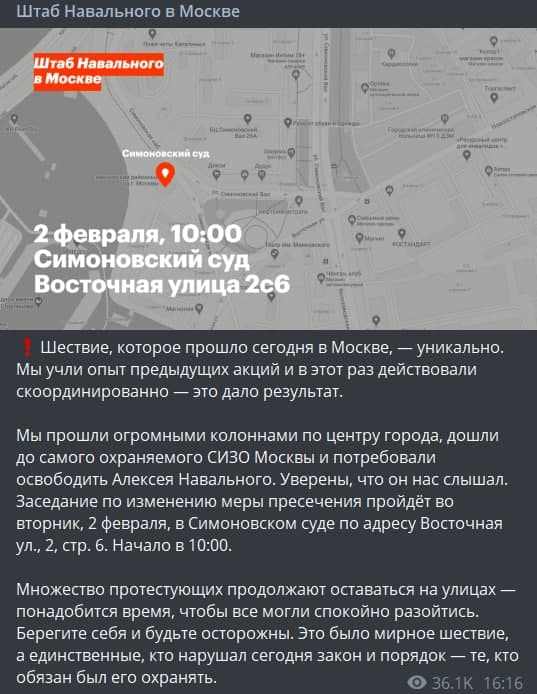 — Команда Навального (@teamnavalny) January 31, 2021