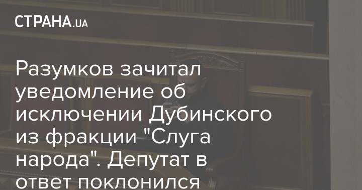 Разумков зачитал уведомление об исключении Дубинского из фракции "Слуга народа". Депутат в ответ поклонился