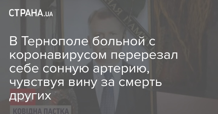 В городской больнице скорой помощи Тернополя пациент с коронавирусной инфекцией на глазах у медиков перерезал себе сонную артерию. Мужчина остро чувствовал вину из-за того, что якобы заразил много людей.