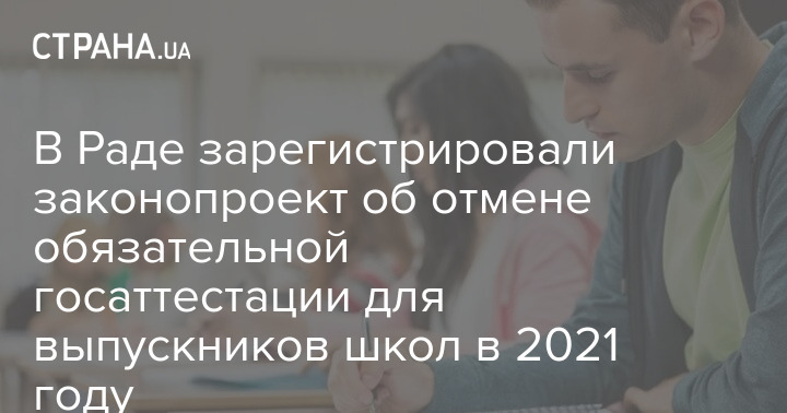 В Верховной Раде Украины зарегистрировали законопроект №5014 "О внесении изменений в некоторые законы Украины относительно отдельных вопросов завершения 2020/2021 учебного года". Документ предусматривает отмену обязательной государственной итоговой аттестации (ГИА) для выпускников школ в этом году.