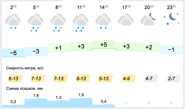 • днем +1...+3, ночью -4...-6, снег с дождем.