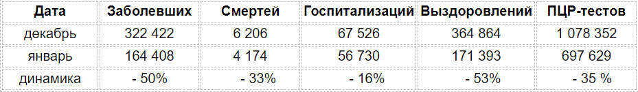 Начинается этот блок с заявления, что по сравнению с декабрем заболеваемость упала втрое.