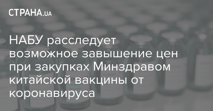 Национальное антикоррупционное бюро Украины расследует возможные закупки Минздравом китайской вакцины от коронавируса Sinovac по завышенной цене.