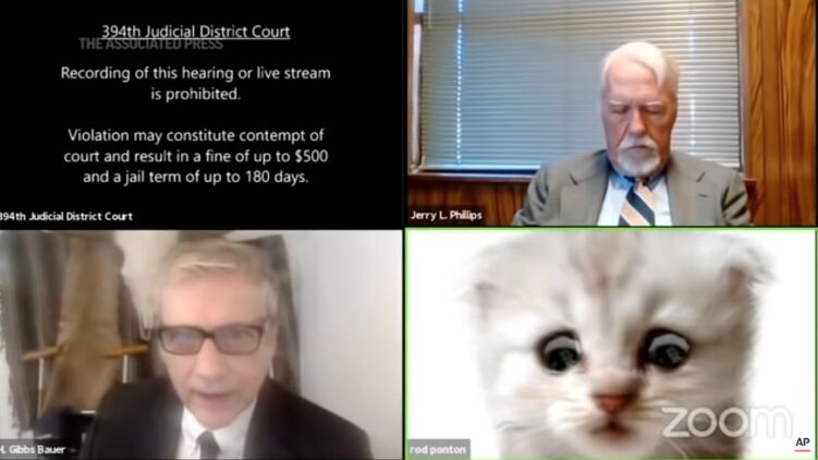Адвокат из Техаса (США) Род Понтон появился на заседании суда, проходившего в формате видеоконференции в Zoom, в облике кота. Он не знал, что его сын включил в Zoom специальный фильтр для преображения внешности.