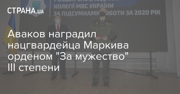 Так, министр внутренних дел Украины Арсен Аваков наградил пятерых сотрудников системы МВД орденом "За мужество" III степени и орденом Даниила Галицкого. В том числе награду получил и Виталий Маркив.