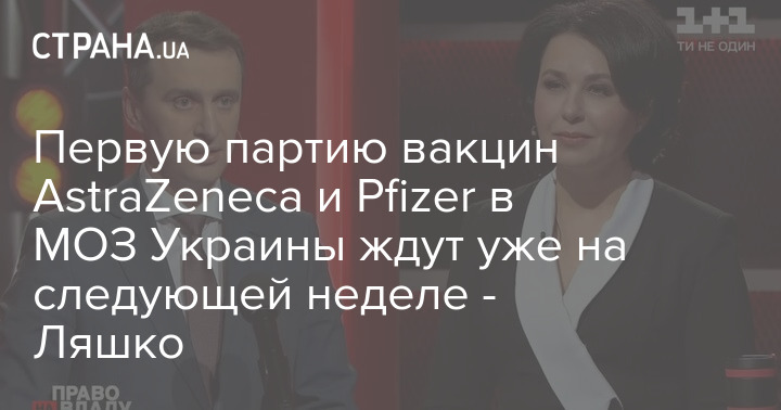 Главный государственный санитарный врач Виктор Ляшко сообщил, что в Украину на следующей неделе может прибыть первая партия вакцин Pfizer и AstraZeneca.