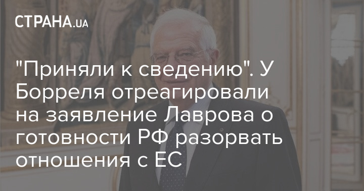 В Европейском союзе приняли к сведению слова министра иностранных дел России Сергея Лаврова, который заявил о возможности разрыва отношений, а также учли разъяснения Кремля.