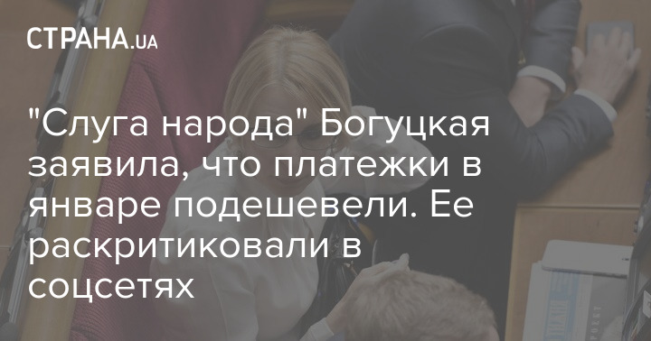 Нардеп "Слуги народа" Лиза Богуцкая заявила, что комтарифы в Украине принципиально не изменились и даже немного снизились по сравнению с 2018-2019 годами. Причем вывод она этот сделала даже не по своей квартире, а по данным из соцсетей.