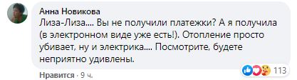 В ответ на комментарии о повышении тарифов нардеп попросила прислать ей платежки в личку.