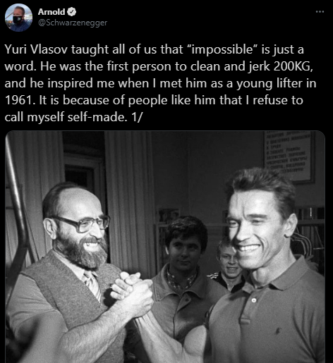 "Из-за него я не говорю, что всего добился сам". Шварценеггер отдал дань памяти своему кумиру Юрию Власову