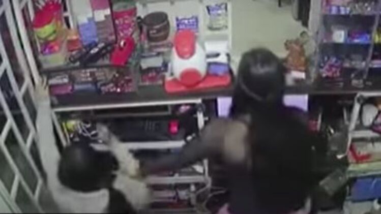 Двое мужчин в мотоциклетных шлемах зашли в небольшой семейный магазин. За ними шел третий, который пытался закрыть двери изнутри. Они направлялись к кассе.