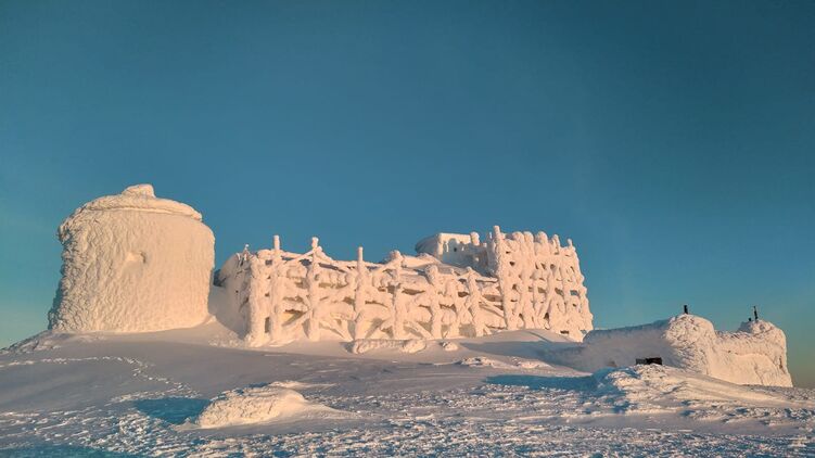 В пятницу обсерватория в Карпатах превратилась в снежную крепость. Фото