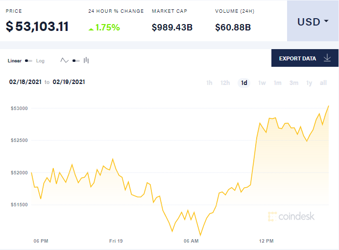 В пятницу, 19 февраля, цена криптовалюты Bitcoin в очередной раз обновила свой исторический максимум, перевалив за отметку в 53 тысячи долларов.