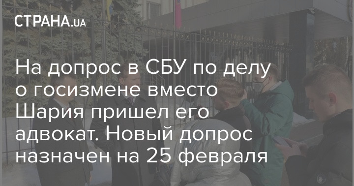 В понедельник, 22 февраля, в Службе безопасности Украины ожидали на допрос лидера Партии Шария Анатолия Шария. В ведомство приехал адвокат политика Валентин Рыбин. Он заявил, что его подзащитный на допрос не явится, так как он получил статус беженца и проживает в ЕС. Теперь в СБУ вызывают Шария на новый допрос 25 февраля.