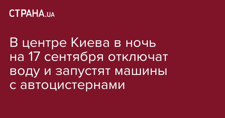 В центре Киева в ночь на 17 сентября отключат воду и запустят машины с автоцистернами